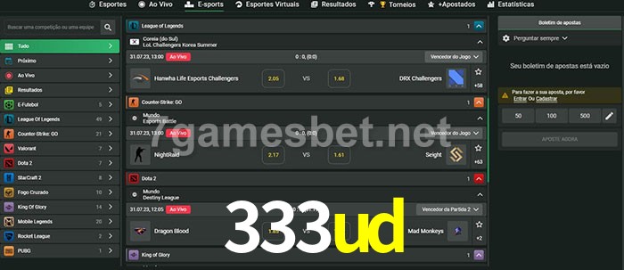 O 333ud oferece uma grande seleção de opções de apostas em e-sports com probabilidades competitivas
